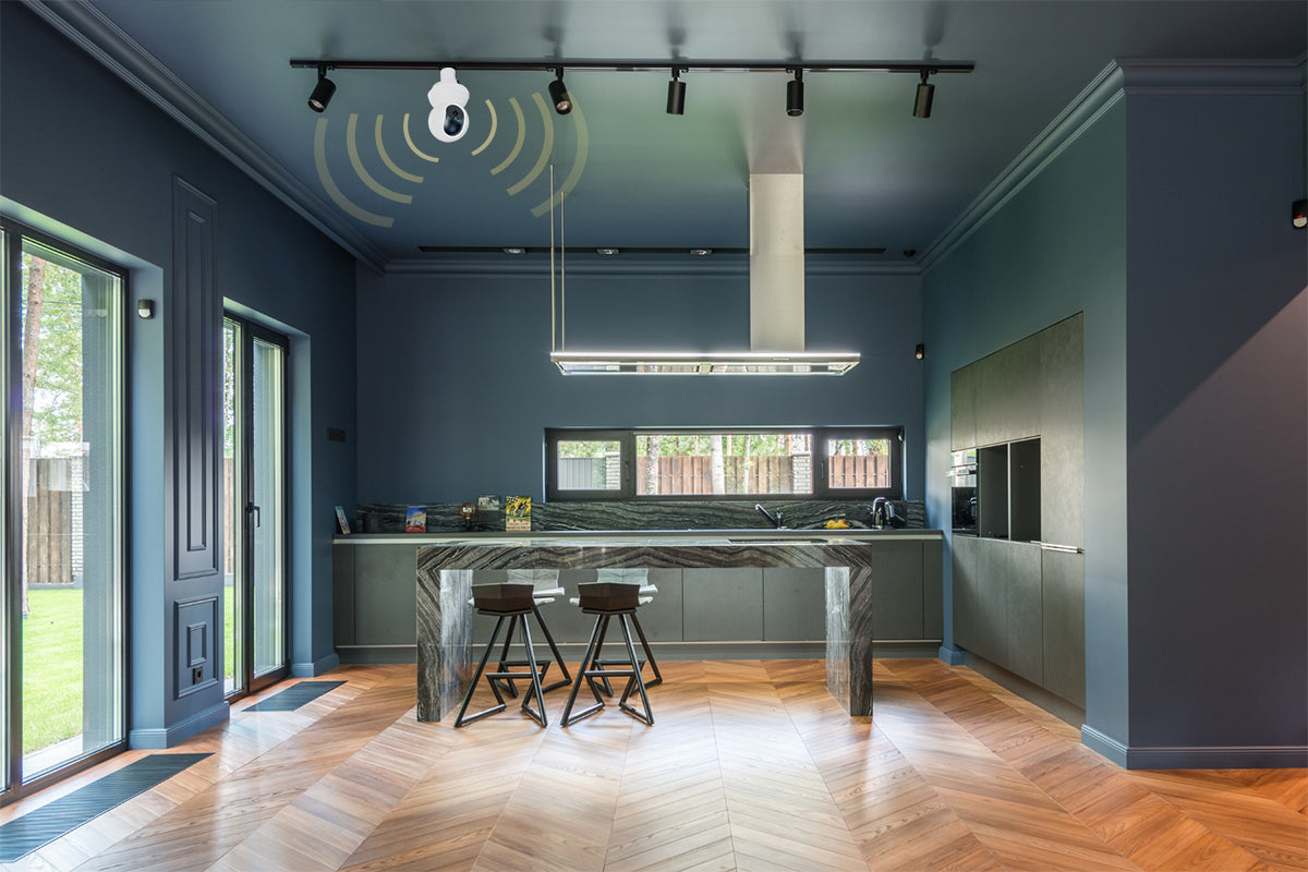 ダクトレール・ライティングレールに吊るし、天吊りすることで、障害物やさえぎる物がない360°広い視野角。上からなら細かい動きも見逃しません。