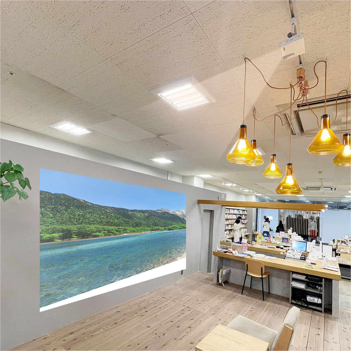 天井から映すことで、いつもの空間がゆったりとした雰囲気に。