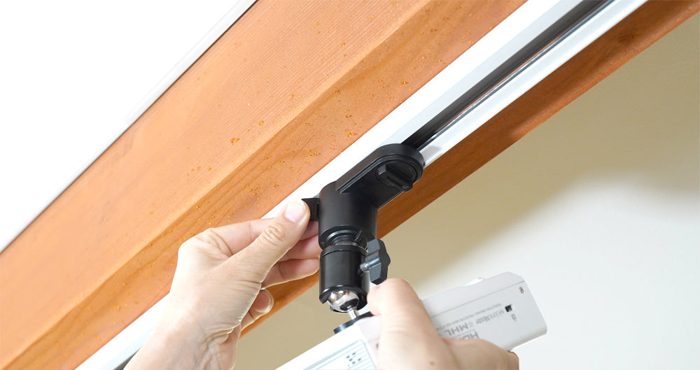 2つのロックでしっかり固定!プロジェクターに三脚ネジ穴があれば、工具不要でライティングレール(ダクトレール)に吊るすだけ!女性でも1人で取り付けできます。